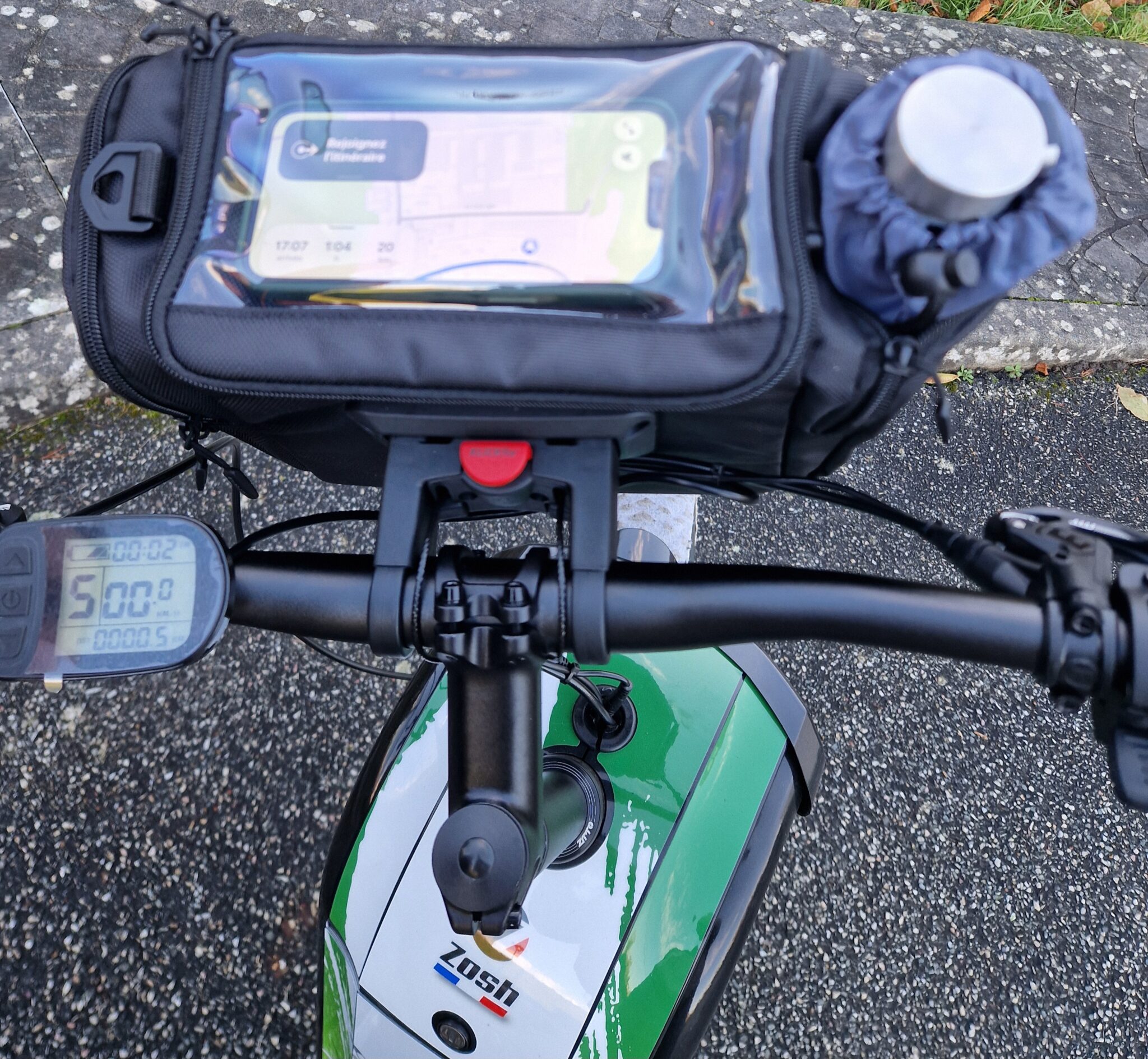 Sacoche de guidon légère avec compartiment transparent pour téléphone et cartes jusqu’à 9,5x20cm.